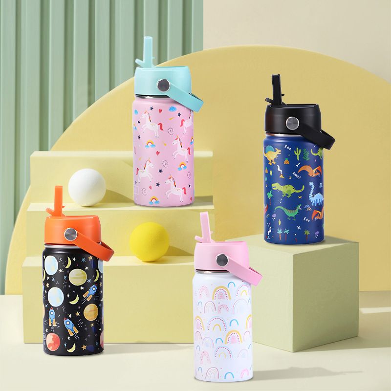Nuova tazza termica in acciaio inossidabile con cannuccia, manico portatile, simpatica bottiglia spaziale a forma di cartone animato, infrangibile
