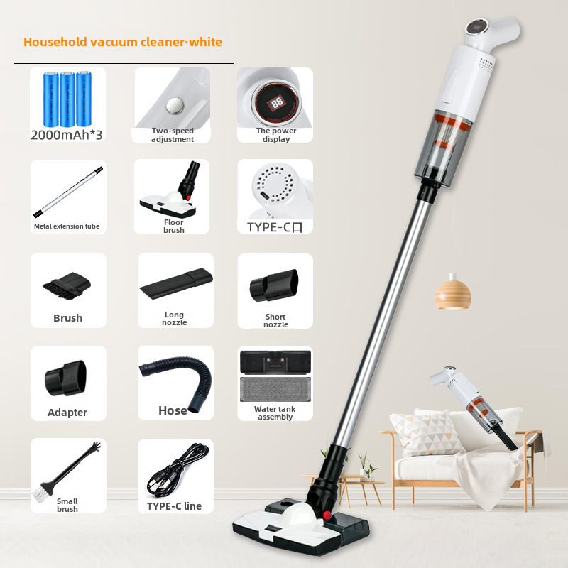 Nuovo aspirapolvere domestico portatile senza fili ad alta potenza transfrontaliero ad alta potenza, illuminazione a umido e a secco ricaricabile