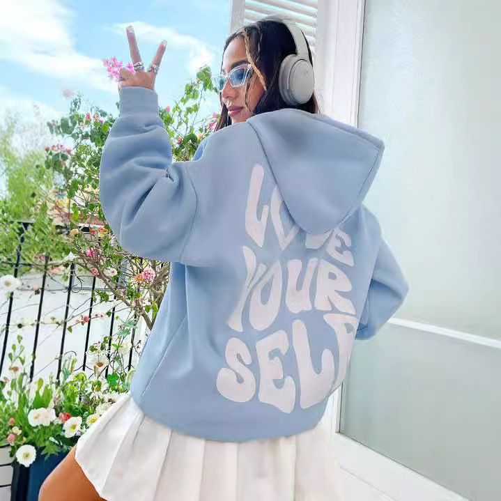 Nuova felpa con cappuccio in pile da donna con stampa di lettere sul retro