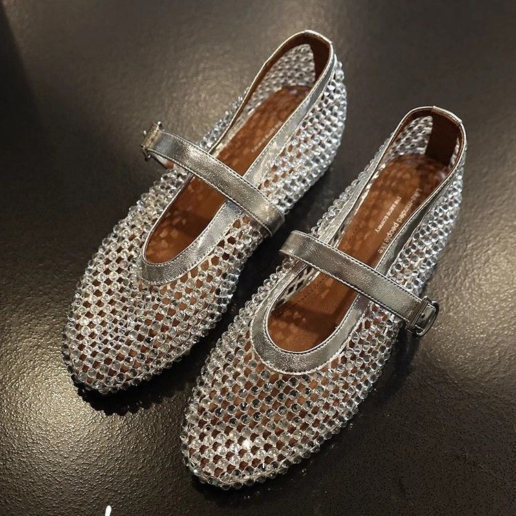 Scarpe Mary Jane con zeppa nascosta, traspiranti, con design a traforo e strass, nuove in stile estivo 2025, per donne minute