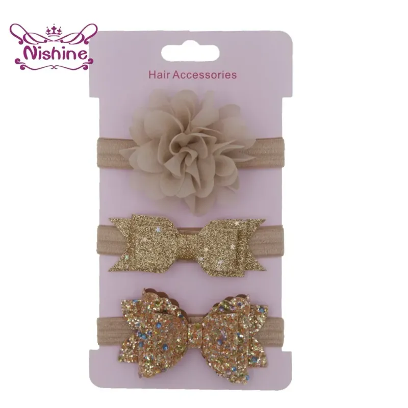 Nishine 3 pz/lotto Fiocco di paillettes Fiore di chiffon Fascia elastica per bambini Fotografia Props Neonate Carino Copricapo Set Compleanno
