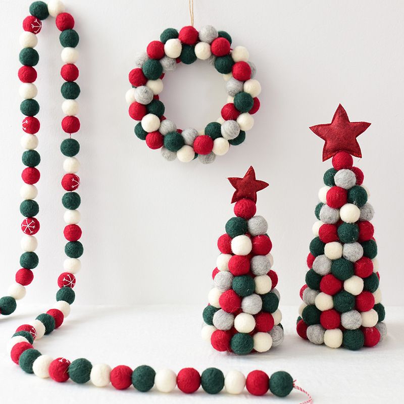 NUCHI Mini Wool Felt Ball String Christmas Tree Decoration Ornaments Christmas Wreath Decoration Hanging Decoration