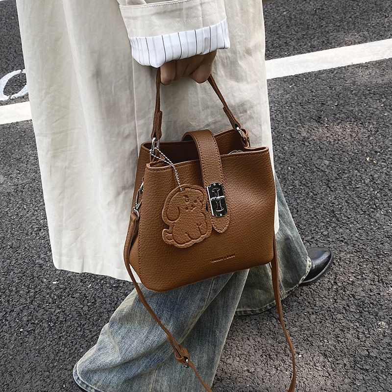 2025 New Niche Handbag Small Tote Bag for Women Simple Lychee Pattern Bucket Bag Versatile Shoulder Crossbody Bag