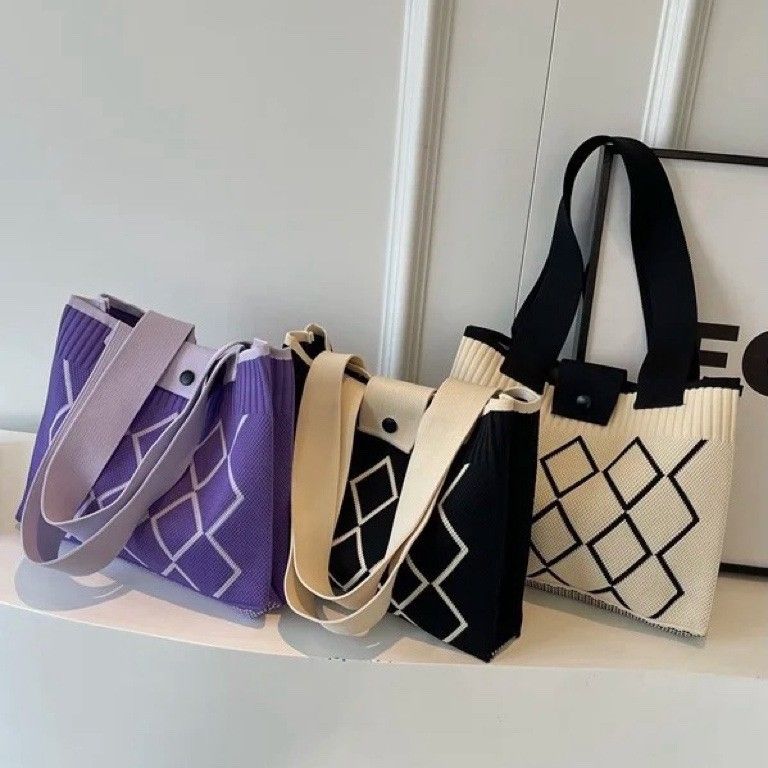 New Trendy High-Value Diamond Knit Single Shoulder Bag for Women, Versatile Hidden Buckle Handbag, Large Capacity Tote Bag for Students, Factory Direct
