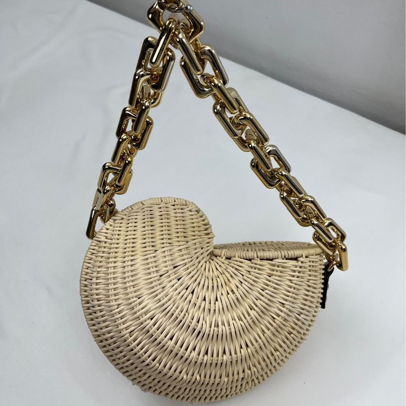 New Rattan Woven Bag Conch Handmade Woven Shell Bag Trendy Shoulder Bag Fashion Handbag