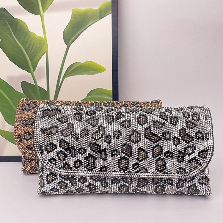 Nuova borsa a tracolla da sera da donna con stampa leopardata e diamanti