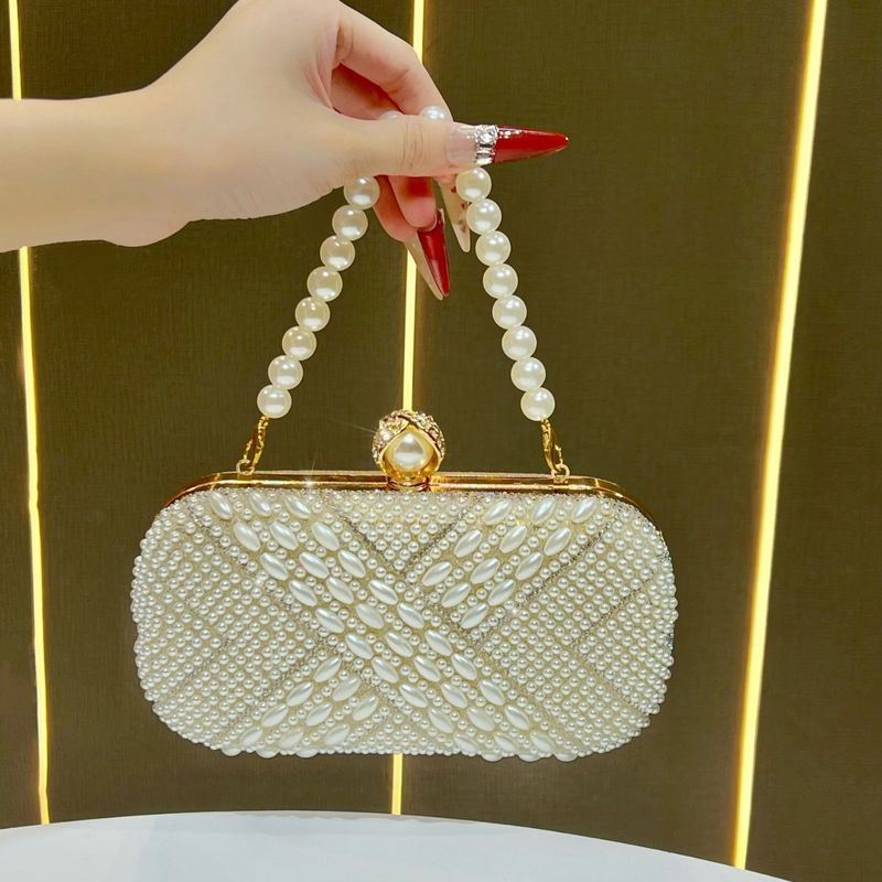 Nuova borsa a tracolla piccola da donna con perle e perline, da sera e da sera