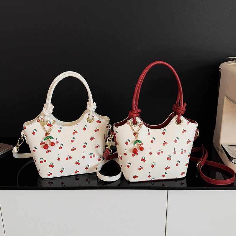New Trendy Girl Handbag Fashion Commuter Cherry Tote Bag Niche Printed Texture Shoulder Bag Underarm Bag
