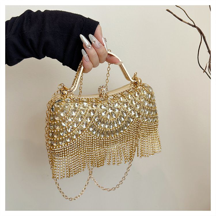 New Rhinestone Bag for Women with Tassel and Hand Strap, Evening Bag, Fashionable Socialite Dress Handbag