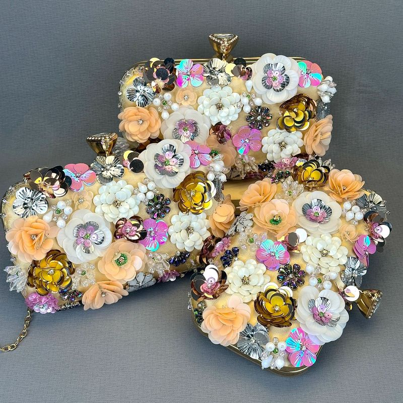 Nuova borsa da sera versatile da festa, realizzata a mano con perline e fiori tridimensionali