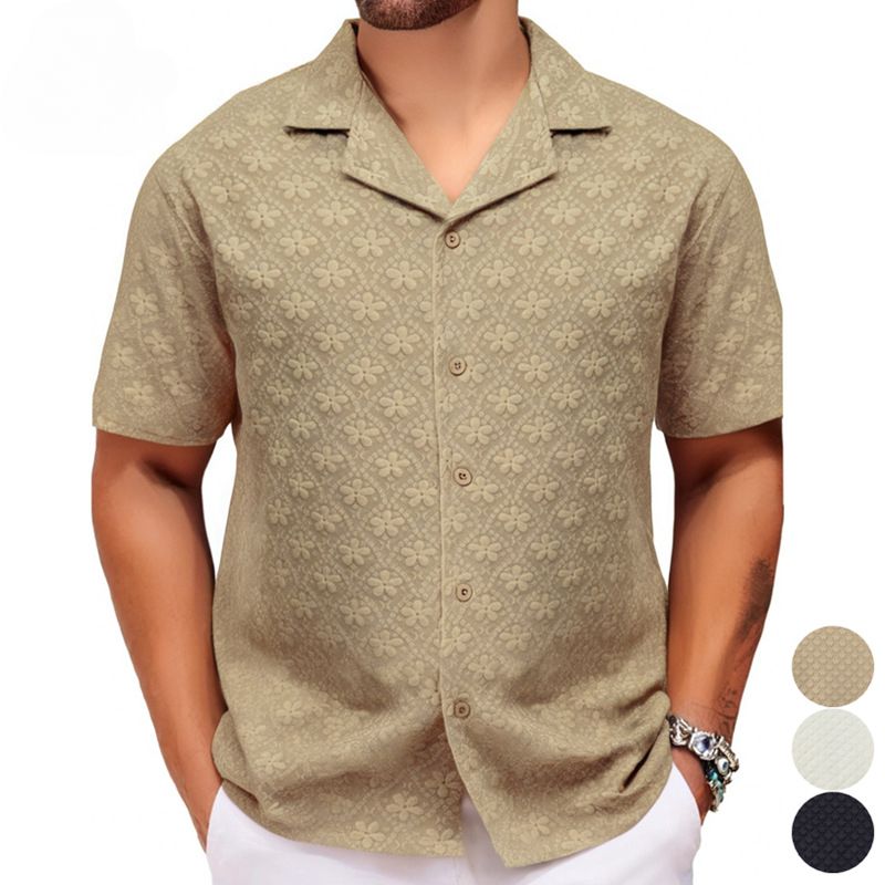 Nuova camicia a maniche corte con stampa floreale da uomo del 2025, con colletto rovesciato e chiusura a bottoni, perfetta per outfit estivi casual