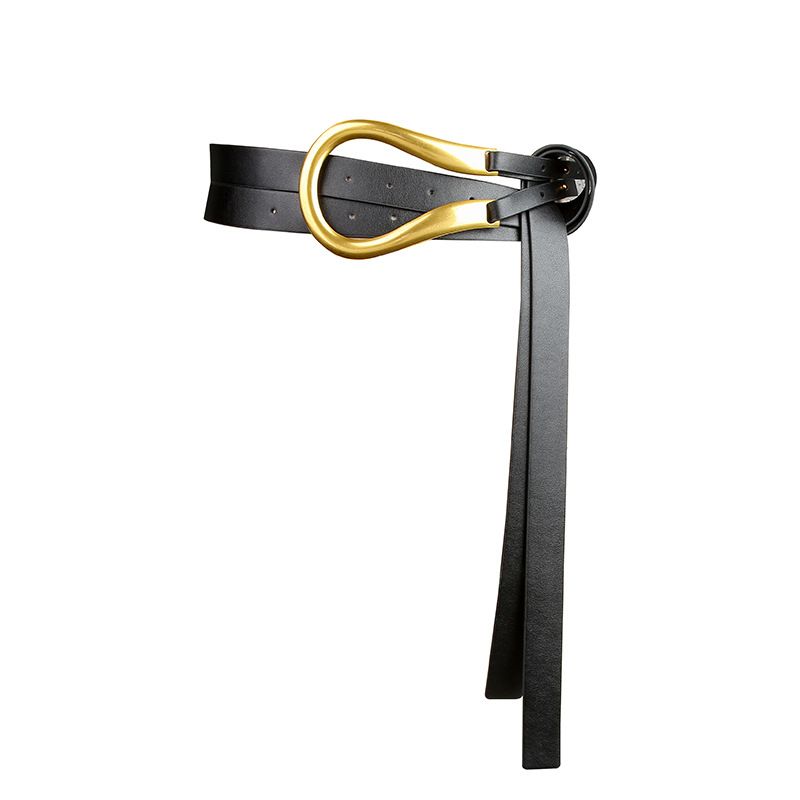 Nuova cintura in pelle di mucca da donna, versione coreana, versatile, fibbia a ferro di cavallo, cintura sottile annodata con sigillo in vita per cappotto, giacca a vento, abito, nero
