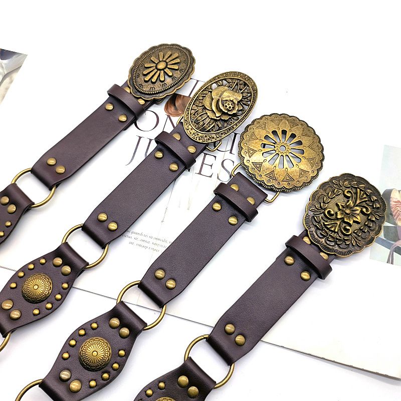 Nuova cintura in pelle PU con fibbia ad anello in metallo in stile cowboy occidentale personalizzata da donna, decorazione con rivetti retrò Y2k, cintura larga, accessori alla moda