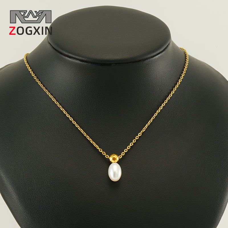 New Stainless Steel Pearl Necklace for Women Fashion Versatile Titanium Steel Texture Light Luxury Necklace