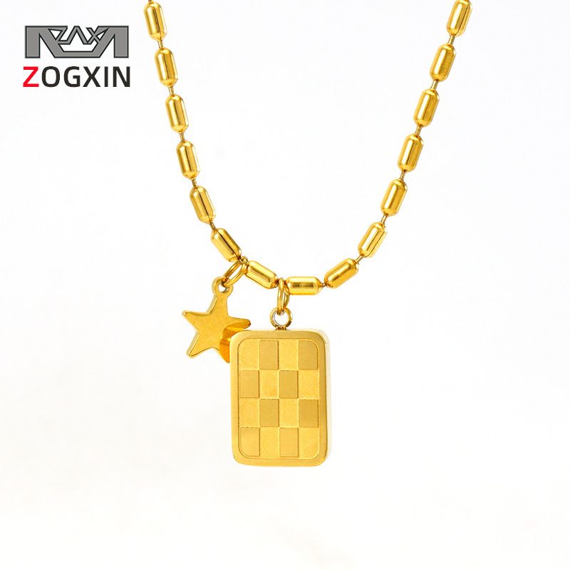 New Square Board Chess Star Titanium Steel Necklace for Women Gold Niche High-end Light Luxury Stainless Steel Pendant for Women