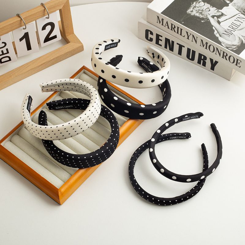New Black and White Polka Dot Headband French Style Sponge High Crown Wide Edge Simple Outdoor Versatile Hair Accessory for Women