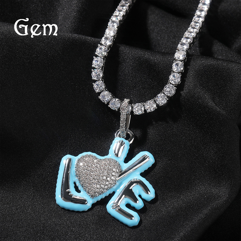 Nuova lettera d'amore con ciondolo creativo alla moda personalizzato a forma di cuore a forma di bolla di diamante hip hop
