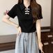 New Chinese style buckle Chinese style short sleeved T-shirt for women in summer 2024, covering the belly and showing off thinness, short POLO collar top trendy