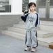 Nuova moda per bambini e bambine di mezza età, 2025, nuovi pantaloni a maniche lunghe con cerniera a costine e piccoli asciugamani, set da due pezzi