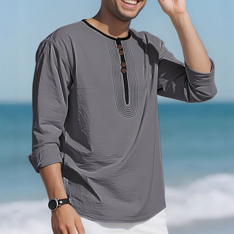 Nuova polo casual da spiaggia da uomo in cotone e lino stile deserto a maniche lunghe