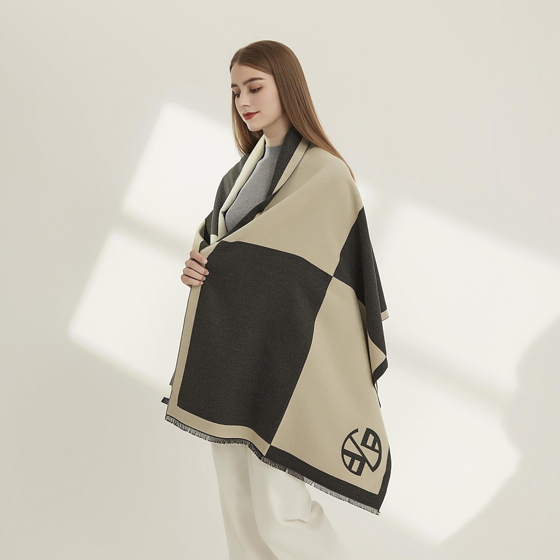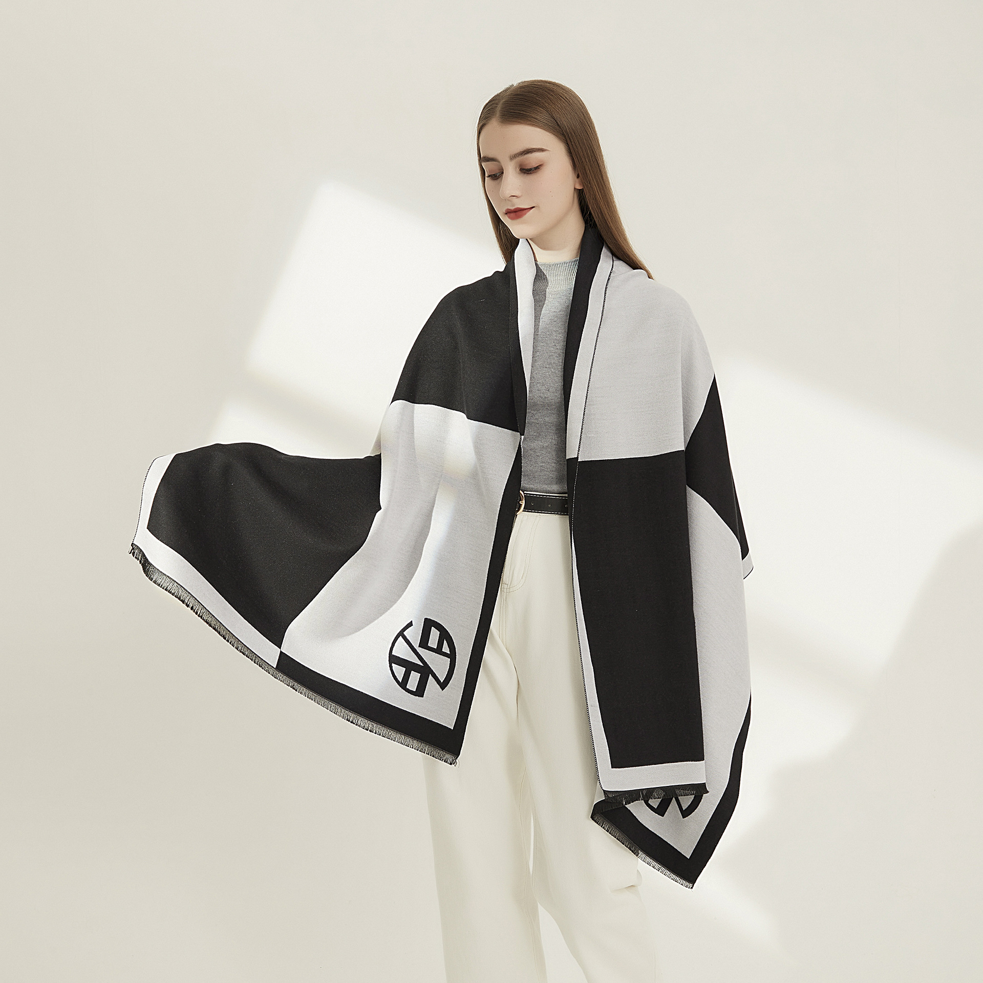 New black and white plaid scarf for women's high-end feel, imitation cashmere, autumn and winter, simple and fashionable, versatile shawl