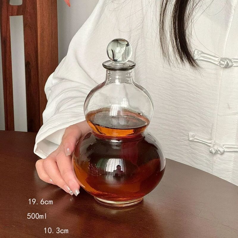 New Chinese Style Gourd Glass Bottle Creative Cold Brew Bottle Teapot High-Value Sealed Bottle Wine Bottle Transparent Glass Cup