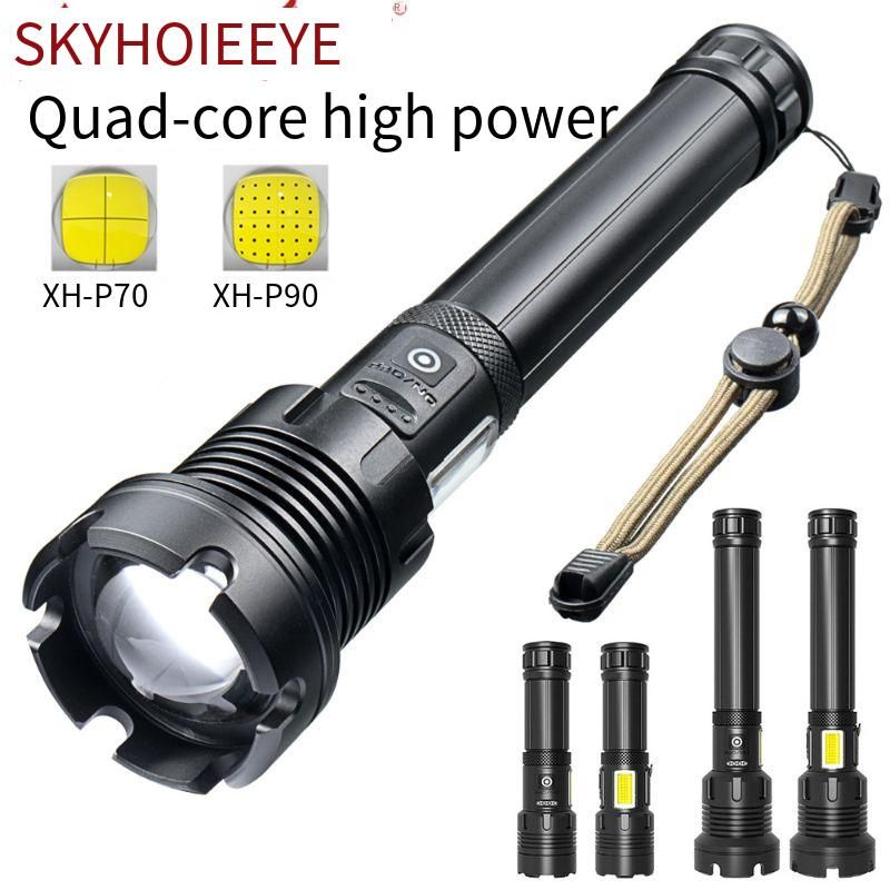 Nuova torcia elettrica ricaricabile P90 LED multifunzione per esterni con zoom telescopico P70