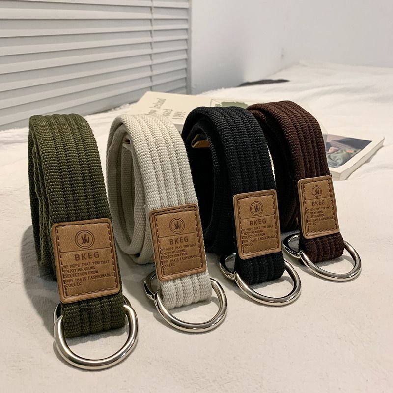 Canvas belt, men's belt, youth Korean version, trendy double loop buckle, student jeans belt, simple and casual, men's and women's fashion