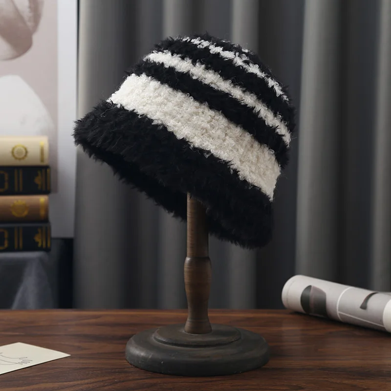Nuova versione coreana con pannelli a righe in maglia da donna Autunno e inverno caldo berretto di protezione per le orecchie moda morbido peluche pescatore