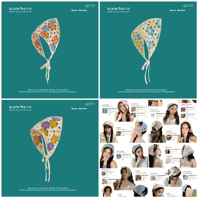 New Korean version Sweet and Cute Handmade Knitted Headband Scarf Small Fresh Sunflower Knitted Headband Triangle Scarf