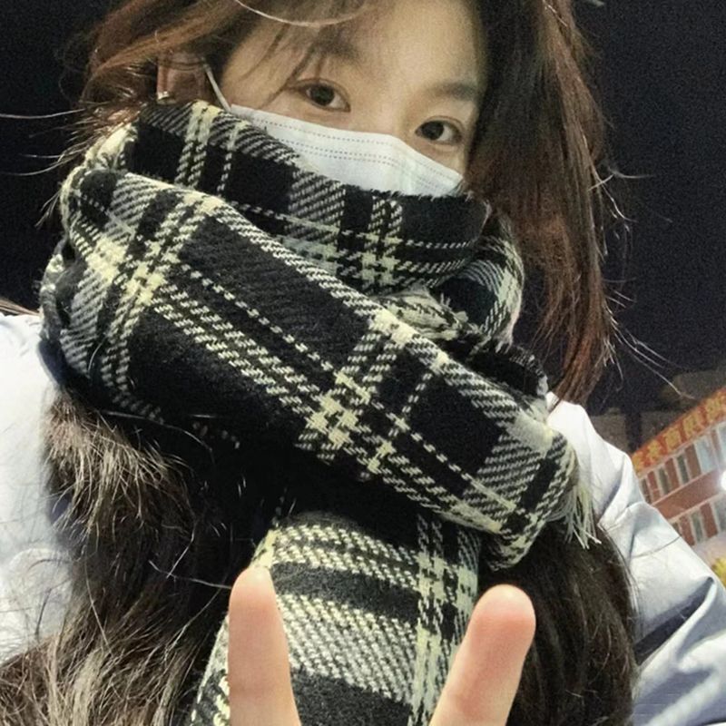 New Ins double-sided checkered scarf, Korean women's winter version, warm and versatile, student scarf, thick and trendy