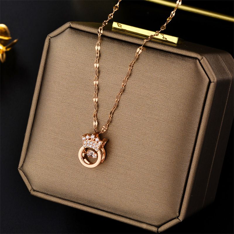 New necklaces for women with a dynamic crown and collarbone chain, personalized and fashionable. Crown beating heart pendant gift