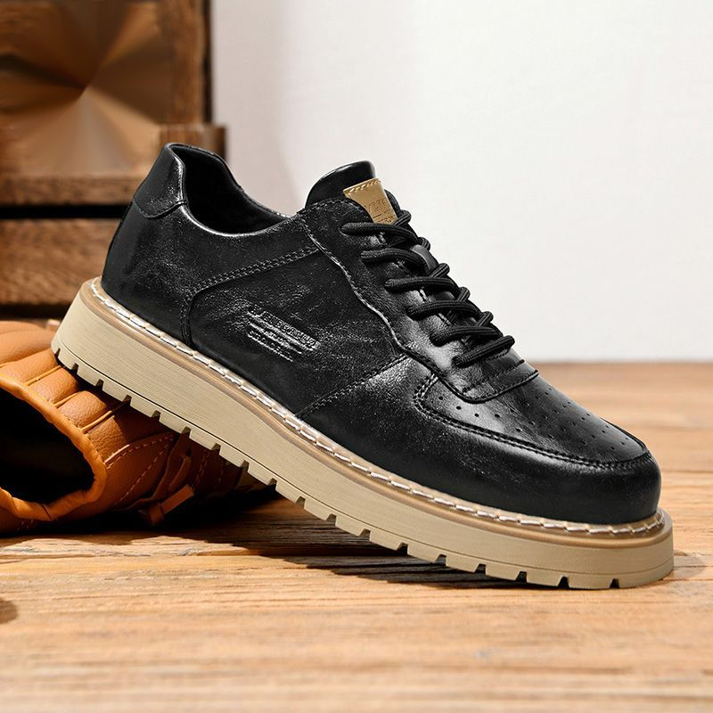 HLA/Heilan Home Men's Shoes New Thick-Soled Casual Leather Shoes Men's Wear-Resistant Height-Increasing Low-Top Outdoor Work Shoes