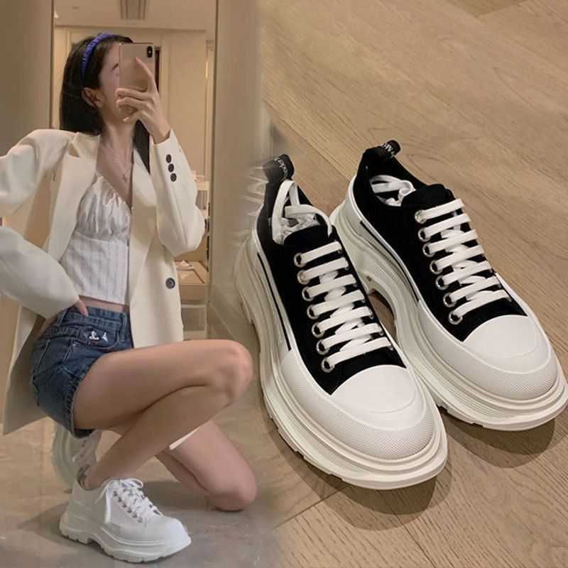 Nuove sneakers bianche 2025, nuove scarpe da donna in tela con suola spessa, con rialzo per papà, alla moda e di nicchia, per donne autunnali