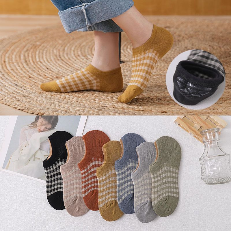Nuovi calzini a quadri calzini da donna in cotone basso alla moda corti primavera e autunno sottili estivi invisibili in silicone antiscivolo calzini da barca