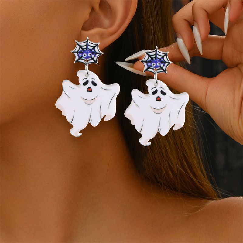 Fully Managed New Eco-friendly Acrylic Earrings Personalized Halloween Ghost Bat Pumpkin Stud Earrings