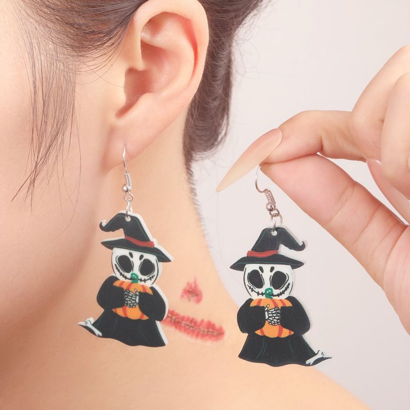 Semi-managed New Eco-friendly Acrylic Earrings Halloween Bat Ghost Pumpkin Heart Earrings Studs