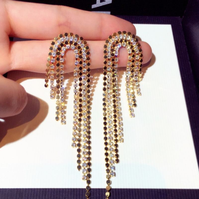 Nuovi orecchini eleganti da donna con paillettes intarsiate e diamanti, con nappa e aghi in argento di alta qualità