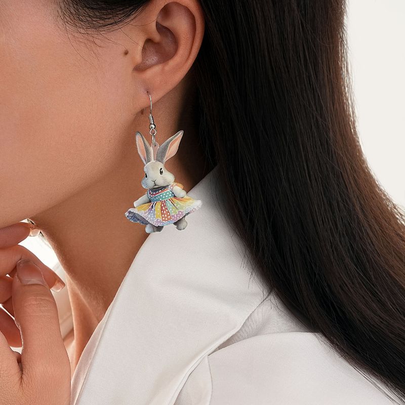 Nuovi orecchini in acrilico eco-compatibili semi-gestiti, simpatici orecchini a forma di coniglietto con stella e astronave