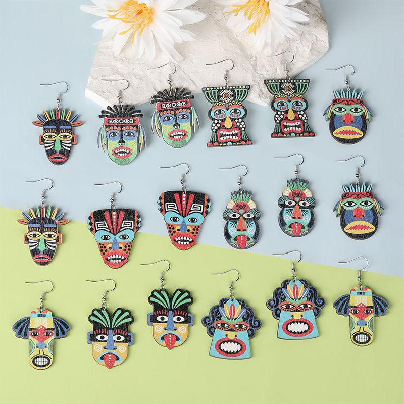 Fully Managed New Eco-Friendly Wooden Earrings Personalized Tribal Face Image Drop Earrings