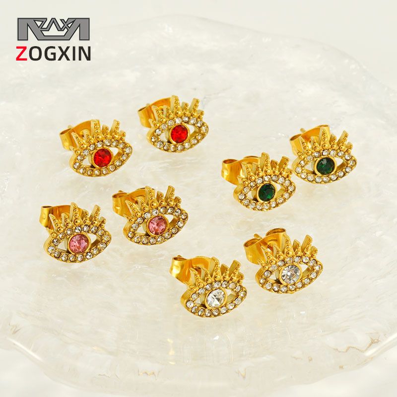 New Stainless Steel Zirconia Eye Small Earrings for Women Simple Titanium Steel Light Luxury Earrings Jewelry