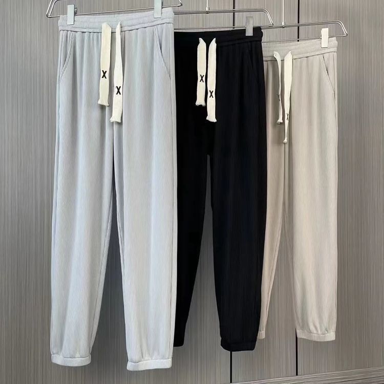 New Spring and Summer Casual Pants for Men, Loose and Elastic, Versatile Ice Silk Pants, Internet Red, Hanging Feel, Tight Foot Guard Pants, Trendy