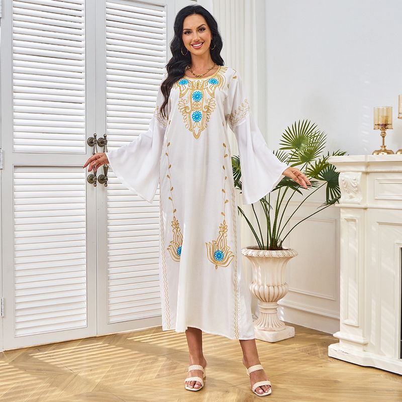 Nuovo abito estivo semplice da tempo libero in cotone ricamato a maniche lunghe della Malesia