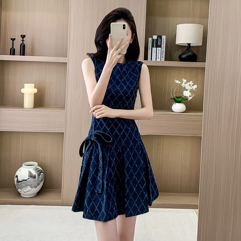 New 2025 Summer Denim Sleeveless Dress - Vest Skirt French Personalized A-line pleated skirt