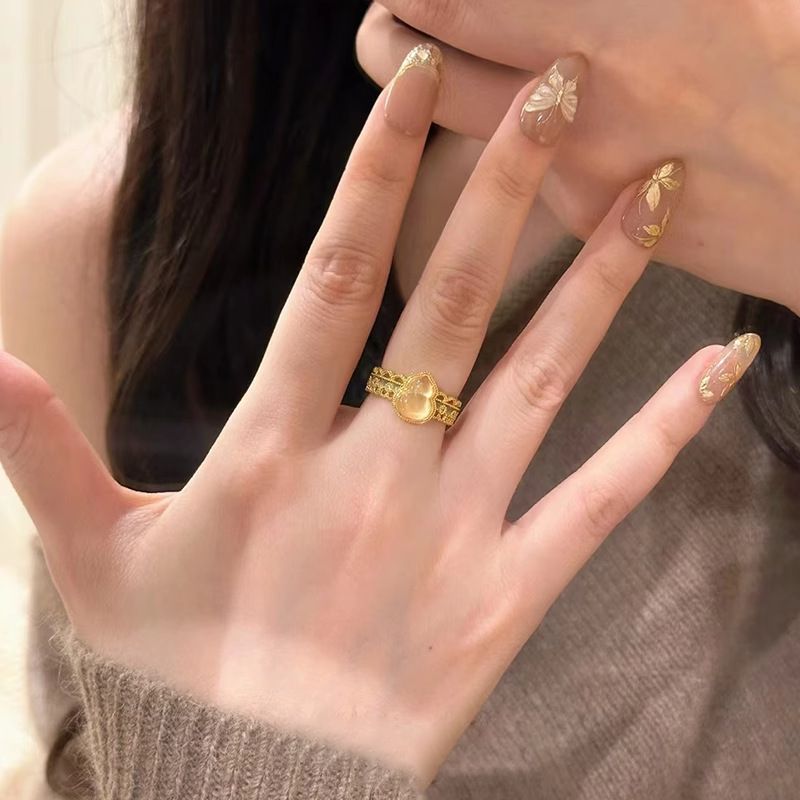 New Chinese Style Gourd Lace Open Ring for Women, High-end Luxury Index Finger Ring, National Style Niche Design Ring