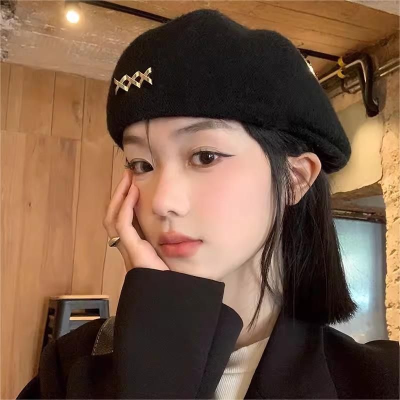 2025 Autumn Winter New Beret Hat for Women, Face Slimming, Reversible Forward Hat, Korean Style, Large Head Circumference, Black Hat