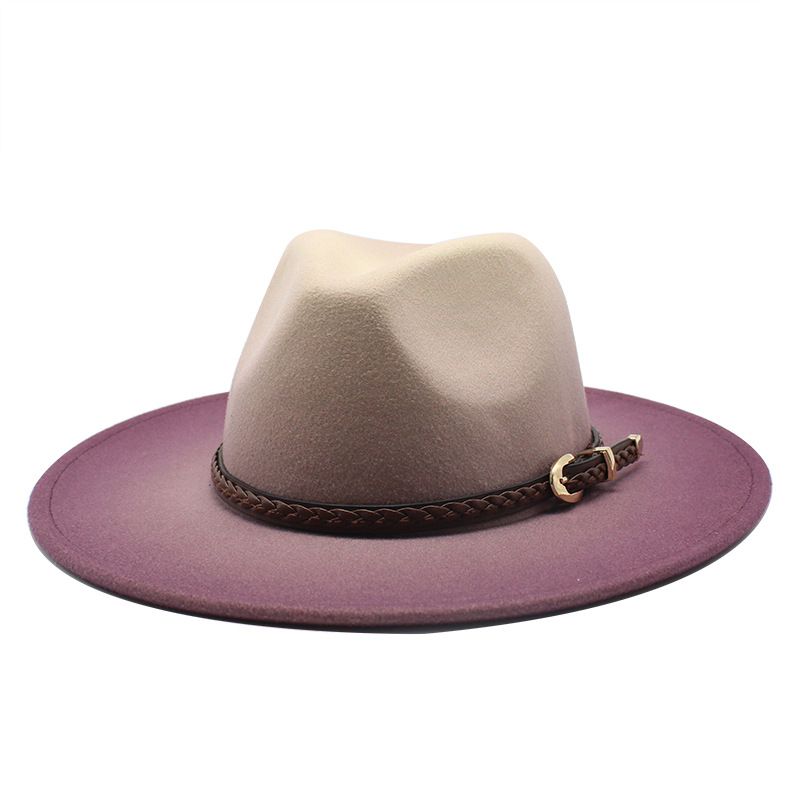 Nuovo cappello alla moda in lana con gradiente in feltro autunno inverno a tesa larga da uomo e da donna in stile britannico bicolore