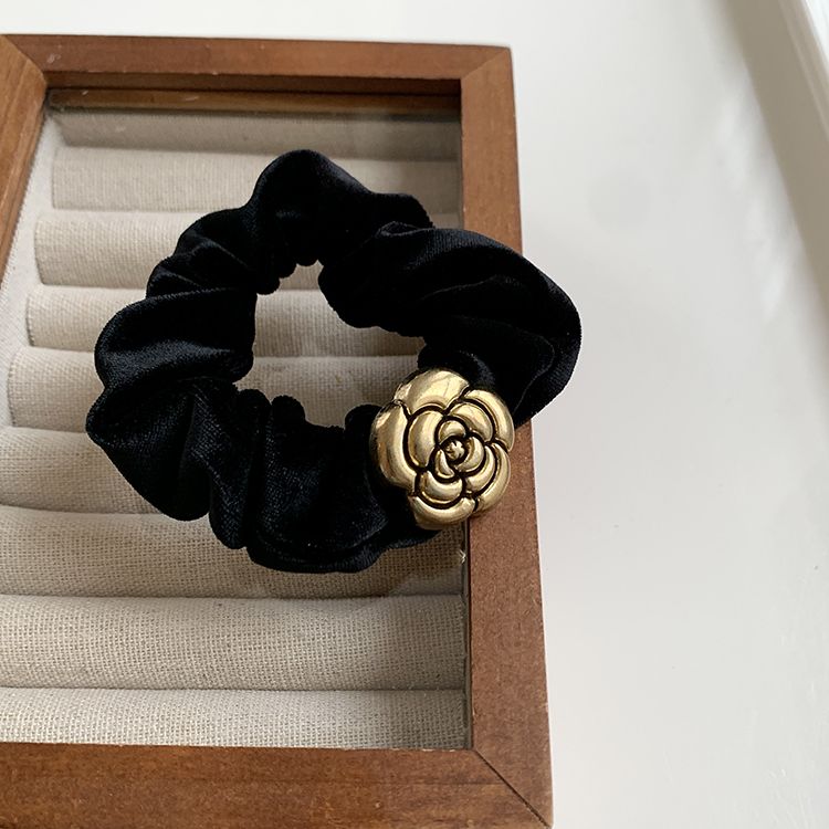 【 Quick Refund 】 2022 New Velvet Large Intestine Hair Loop, Retro and High end, Small Fragrant Wind, Camellia Head Rope, Autumn and Winter Tie Hair Rope for Women