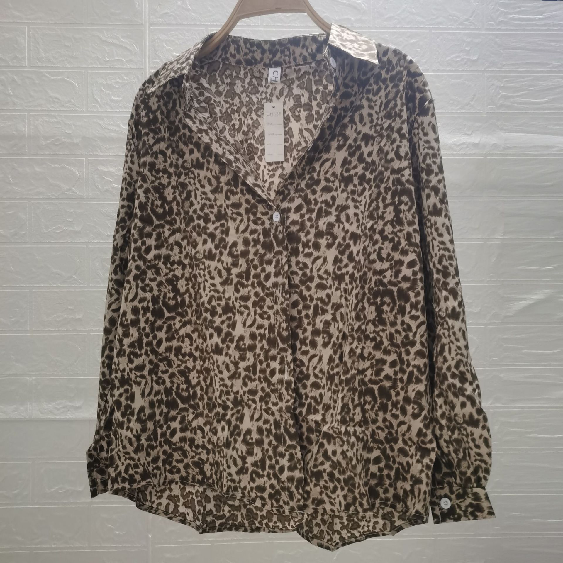 New men's shirt with leopard print, oversized printed long sleeved loose casual men's floral shirt