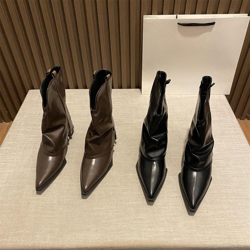 Nuovo design autunno inverno, elegante, caldo, stivaletti alla moda, con punta a punta, tacco basso, stivali corti a sigaretta_voghion.com